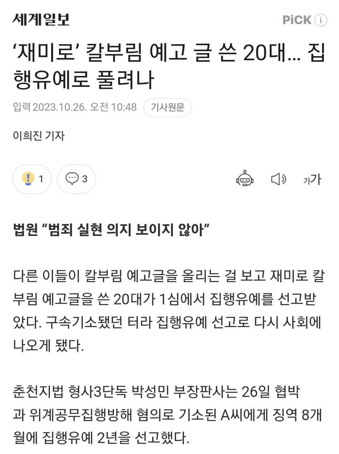 디씨에 살인예고 글 썼다가 구속 된 20대 남자의 최후