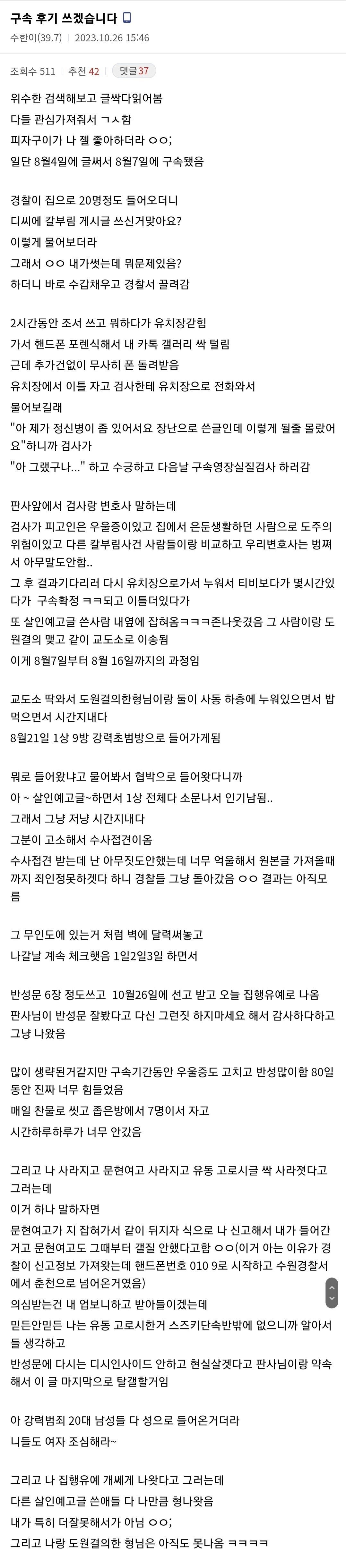 풀려나서 또 디씨에 구속후기 씀