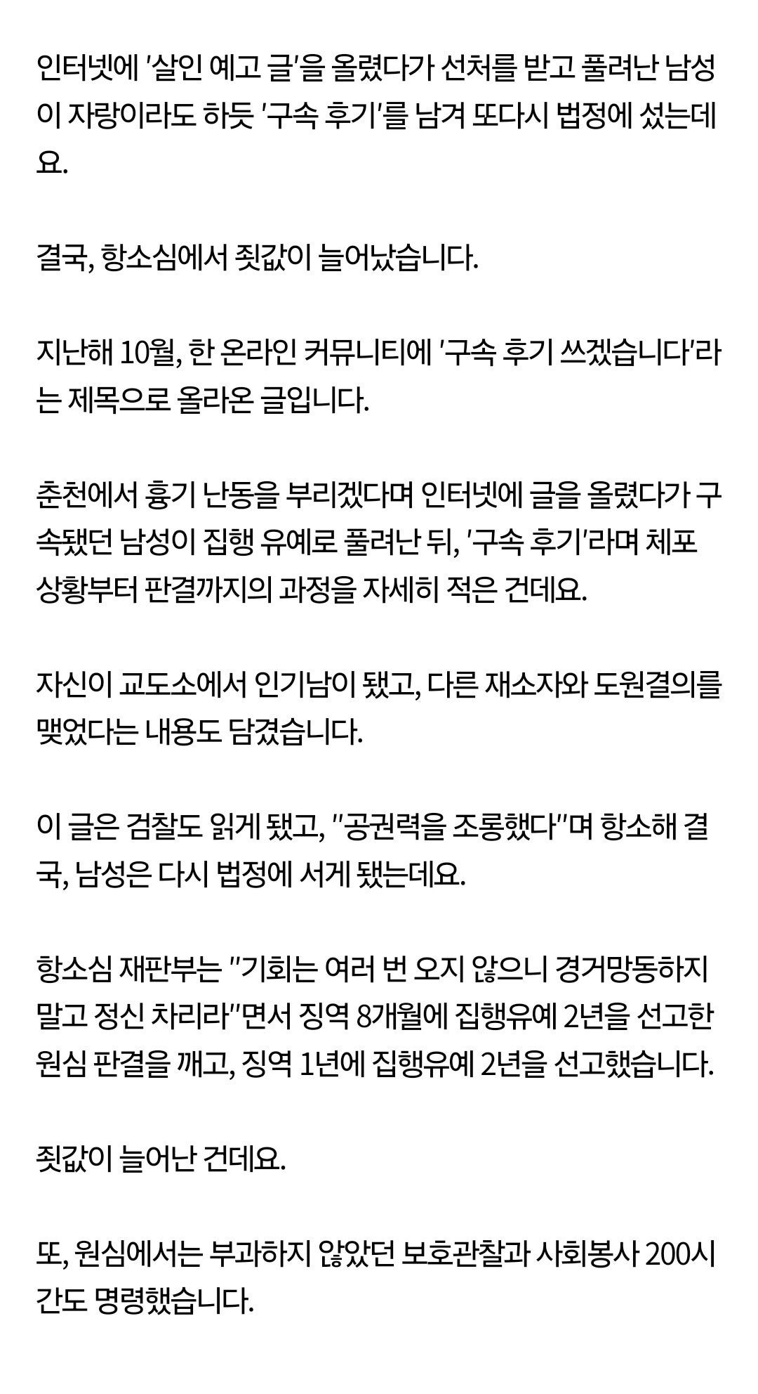 응 괘씸죄 추가 징역 8개월 > 징역 1년에 집행유예 2년