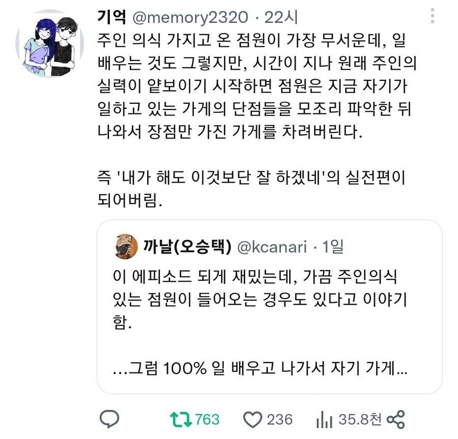 | 1116569 | 자영업자 카페에 올라온 알바생과의 문자 | 최신게시물 | |