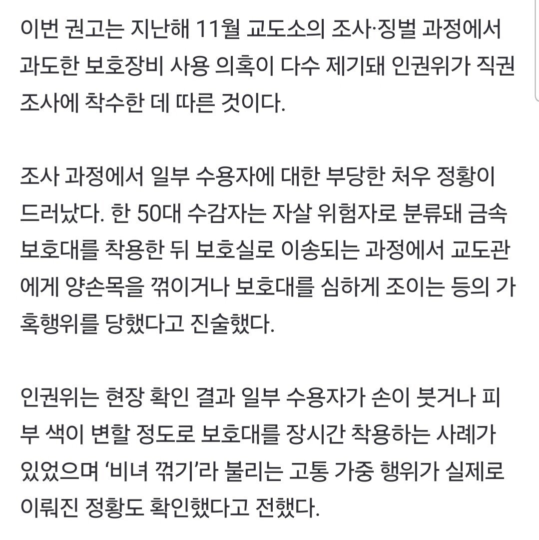 교도소 '비녀꺾기' 뭐길래…"일부 수용자에 가혹행위 확인"