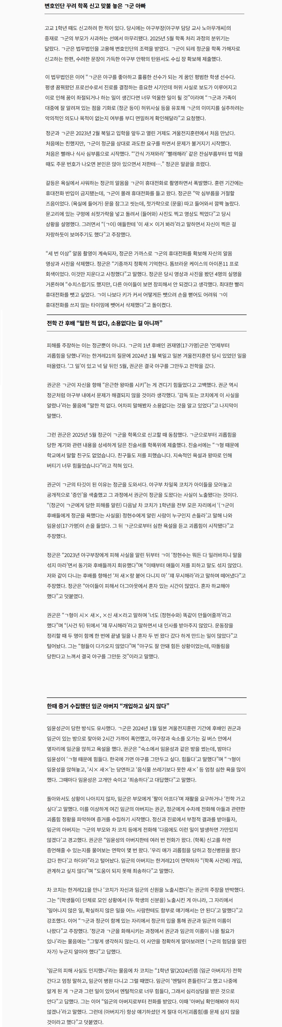 피해자인 정군을 오히려 학폭 가해자로 역고소했다고